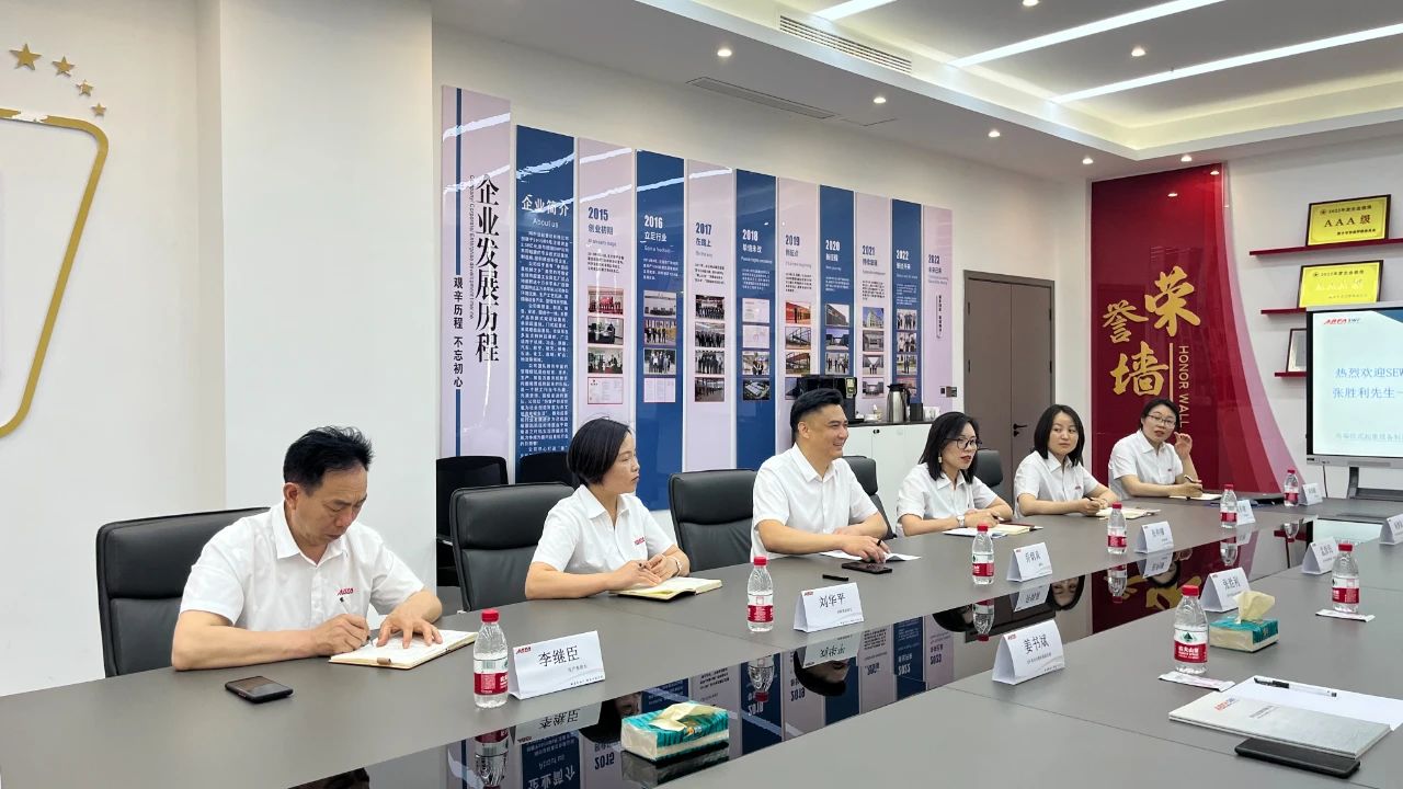 6月7日,SEW中国公司执行董事长张胜利一行到访,阿尔法董事长乔炳真带领公司团队与来访客人进行友好座谈。