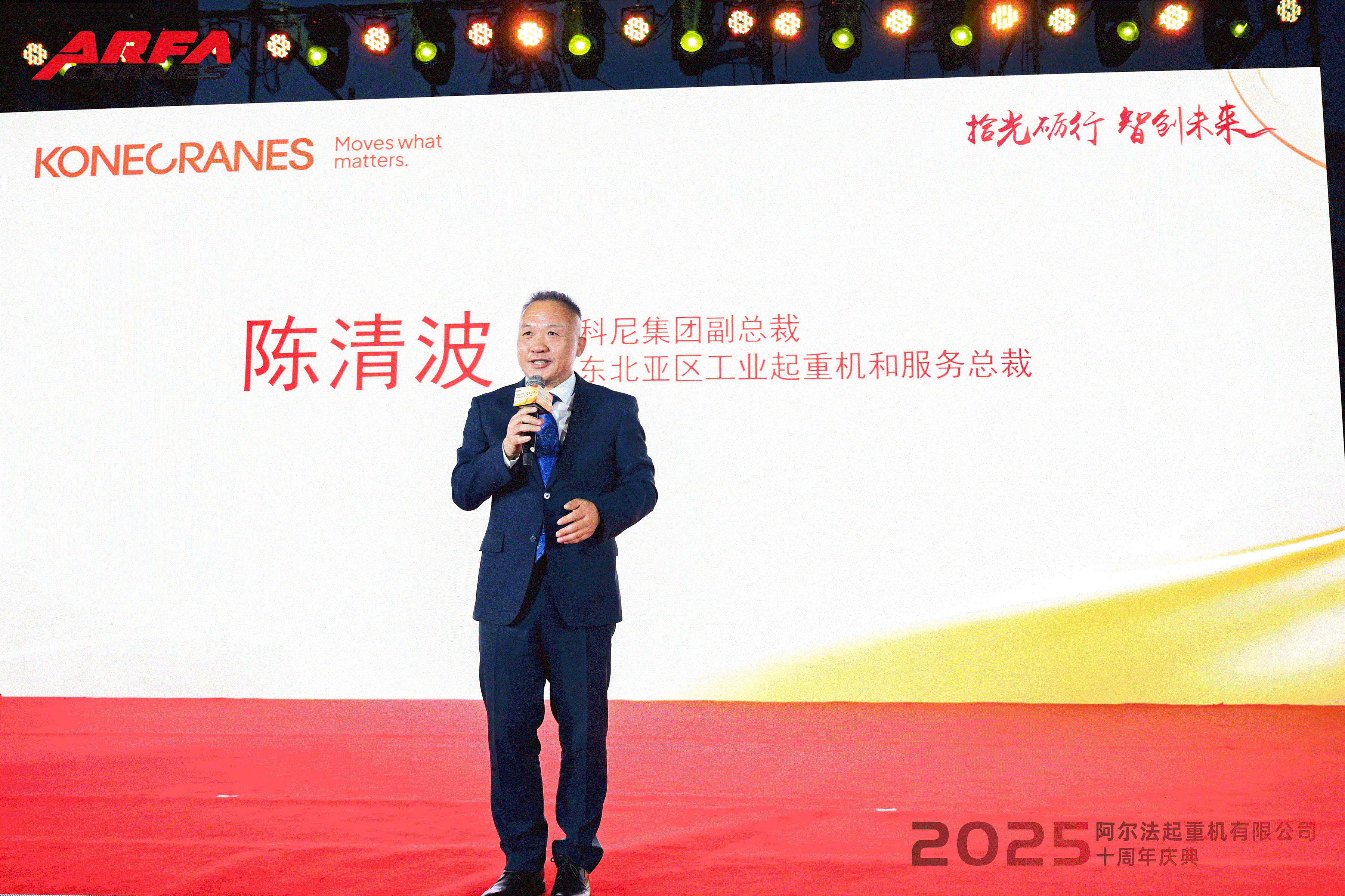 科尼集团副总裁陈清波先生作为全球知名起重设备与服务供应商代表发言,科尼集团以百年技术积淀与全球化布局享誉业界,始终以技术领先与服务卓越立足行业。十年来,科尼始终与阿尔法携手并进,既是发展的见证者,更是重要的同行伙伴。陈清波总裁明确表示在双方持续的交流与合作中,还将不断开拓新的可能,共同迎来更加广阔的发展前景!