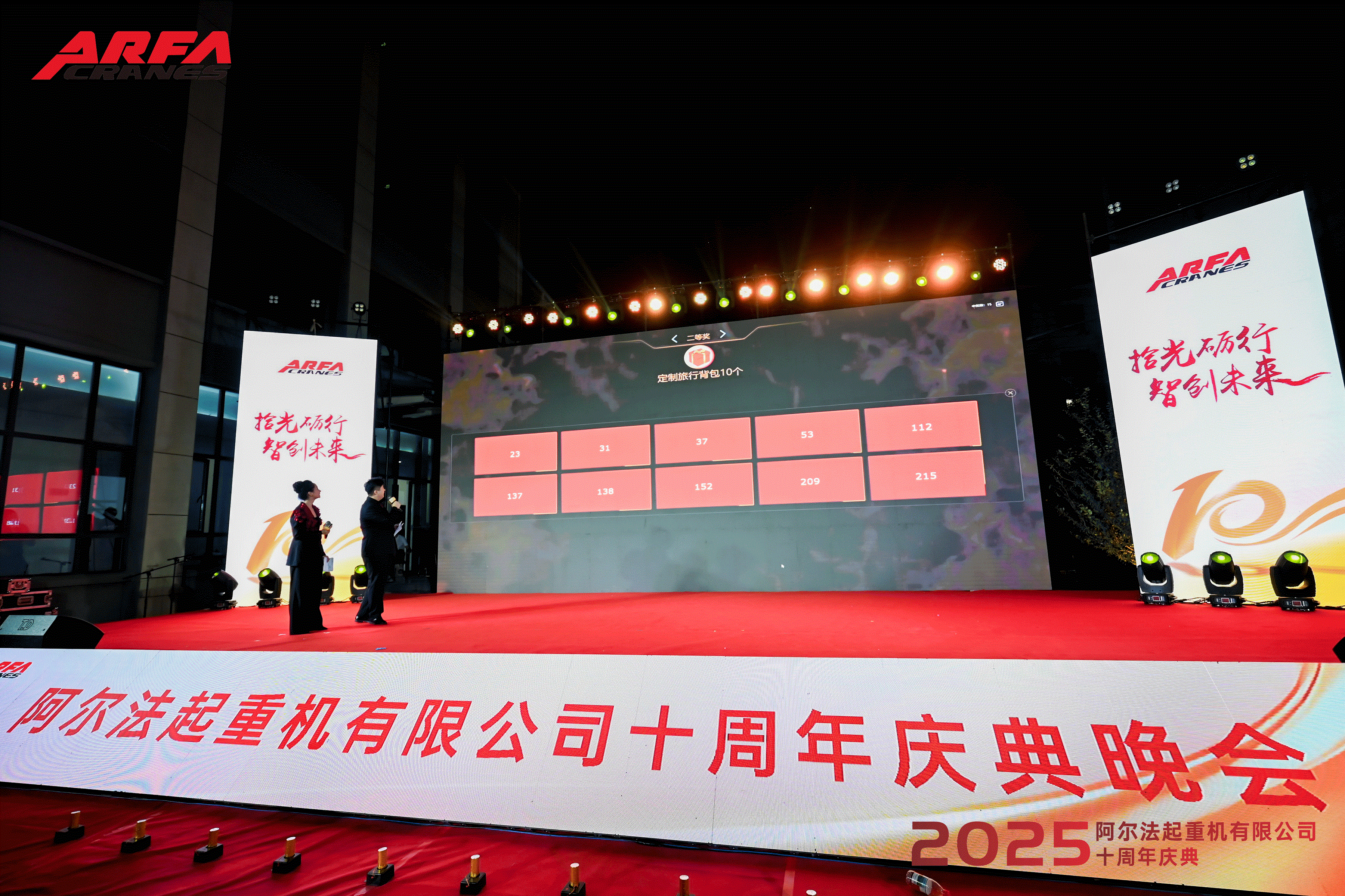 星光与灯光交织的九月夜晚,藏着阿尔法人十年的感动与期许。9月 30日,以“拾光砺行・智创未来”为主题的阿尔法起重机有限公司十周年庆典晚会温情启幕,这是一场回望初心的感恩盛宴,更是一次携手伙伴、共绘智能蓝图的壮志宣言。